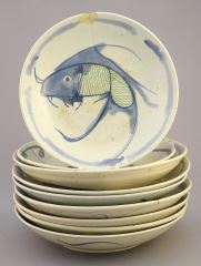 Collection of 17 Various Chinese porcelain "Fish" Dishes, 7 1/8 - 9 1/8" Diam. (cracks noted).