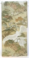 Japanese "Cranes & Fans" Obi, 20th Century, 1' x 12'11".