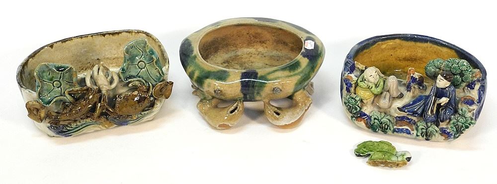 6 Chinese Shiwan Ware Planter Boxes (chips & cracks noted), Approx. 50Gm , 6 1/4 x 7 3/4"W.