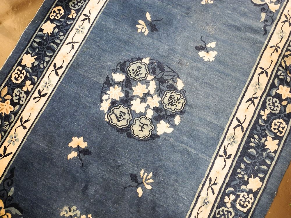 Beijing Blue Wool Carpet Approximately 6'10" x 4'3".