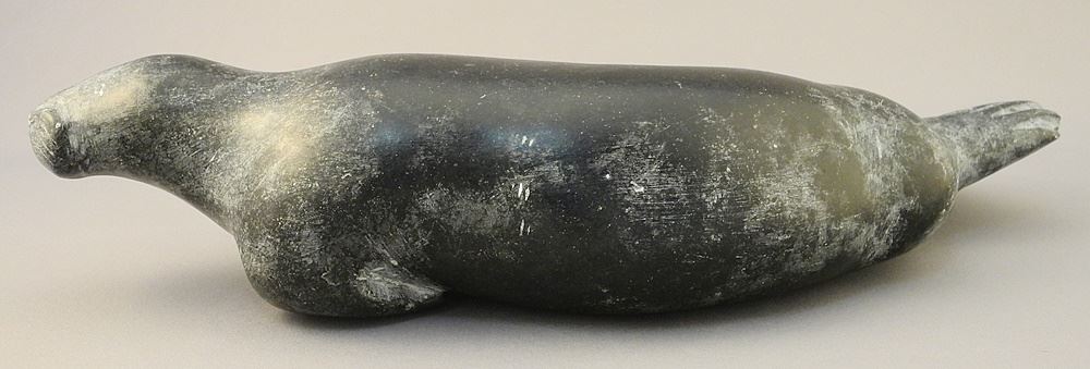 LOT 306 Inuit Stone Seal signed E9-1771 with Syllabics, 12 1/4"L. Estimate: $100 - $150 Sold For: $90 Auction Date: Tuesday, January 30 2024 at 4:00 PM