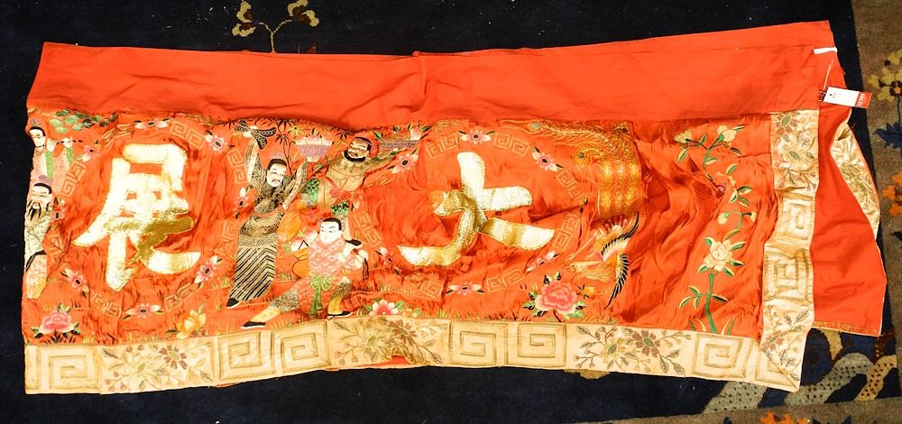 Antique Chinese Gold Embroidered Panel, 114" x 25".