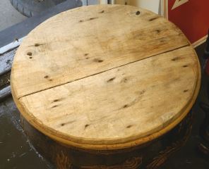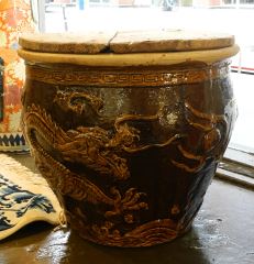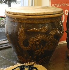 Chinese Stoneware Egg Crate with Wooden Cover & Stand, 16 1/2" x 19 1/4" Diameter.