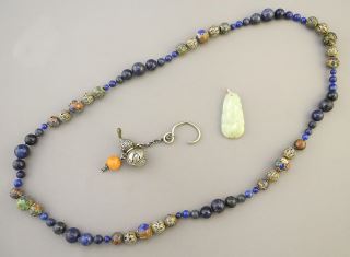 LOT 327 Cloisonne & Lapis Necklace (28") / Jade Pendant with 10K (tested) / Silver Snuff Bottle (1 3/8 Estimate: $180 - $220 Sold For: $155 Auction Date: Tuesday, January 30 2024 at 4:00 PM