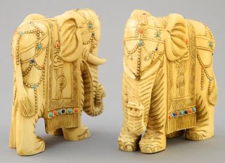 LOT 81 Pair of Chinese Inlaid Ivory Caparisoned Elephants, 4" x 1 1/2" x 3 3/4". Estimate: $400 - $500 Sold For: $700 Auction Date: Tuesday, January 30 2024 at 4:00 PM