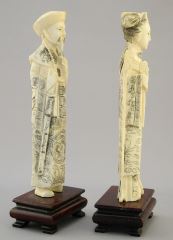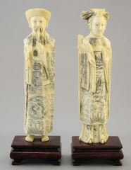 LOT 128 Pair of Chinese Carved Ivory Mandarin Figures on Stands, 6 1/8", No Export. Estimate: $150 - $200 Sold For: $120 Auction Date: Tuesday, January 30 2024 at 4:00 PM