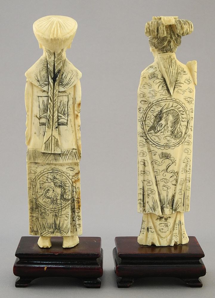 Pair of Chinese Carved Ivory Mandarin Figures on Stands, 6 1/8", No Export.