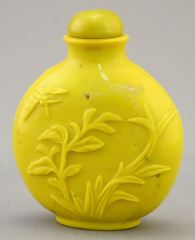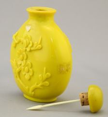 Yellow Chinese Peking Glass "Prunus Bough" Snuff Bottle, 3 1/8"h.