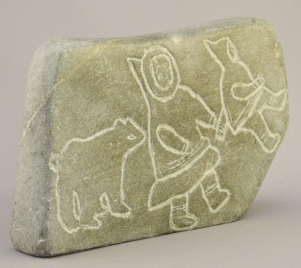LOT 148 Inuit Stone Panel Carving, 4 1/4 X 7 X 1 3/8", Faintly signed. Estimate: $50 - $60 Sold For: $50 Auction Date: Tuesday, January 30 2024 at 4:00 PM