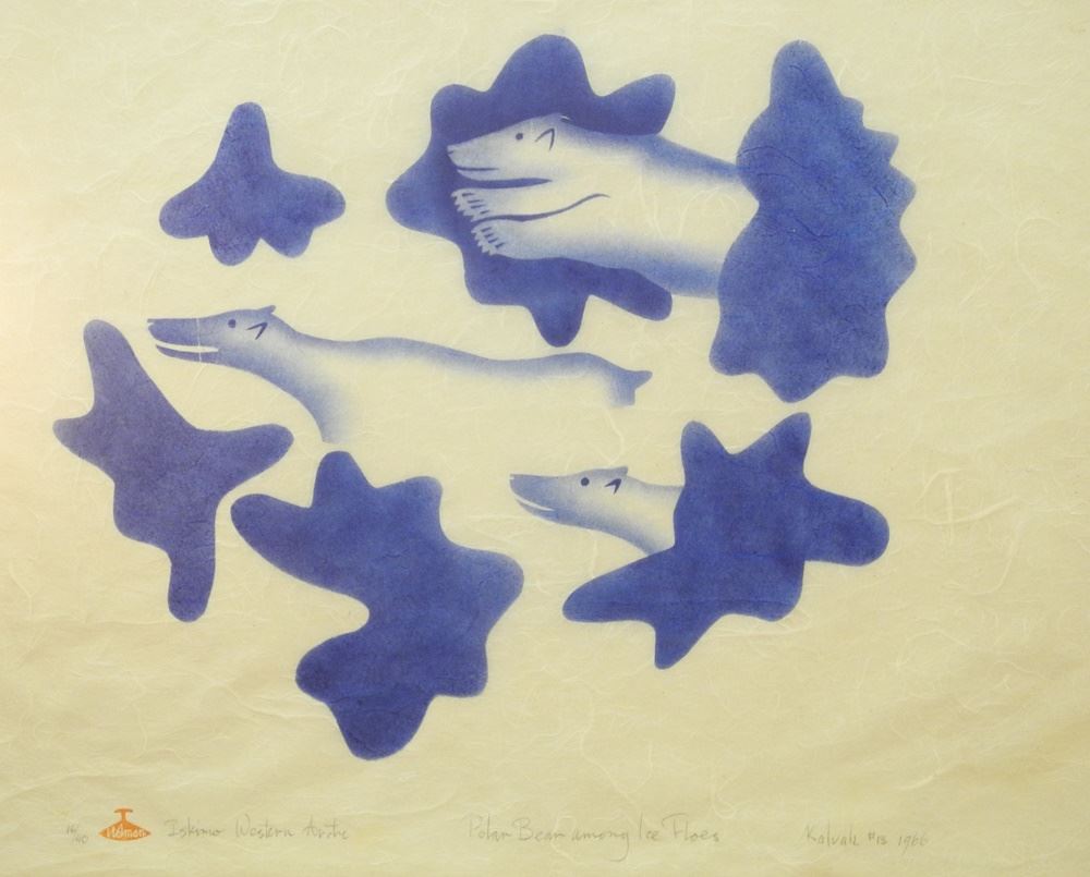 Holman Lithograph signed Kalvak #13 1966, 18 1/2 x 23 1/2", "Polar Bear Among Ice Floes", #16/40.