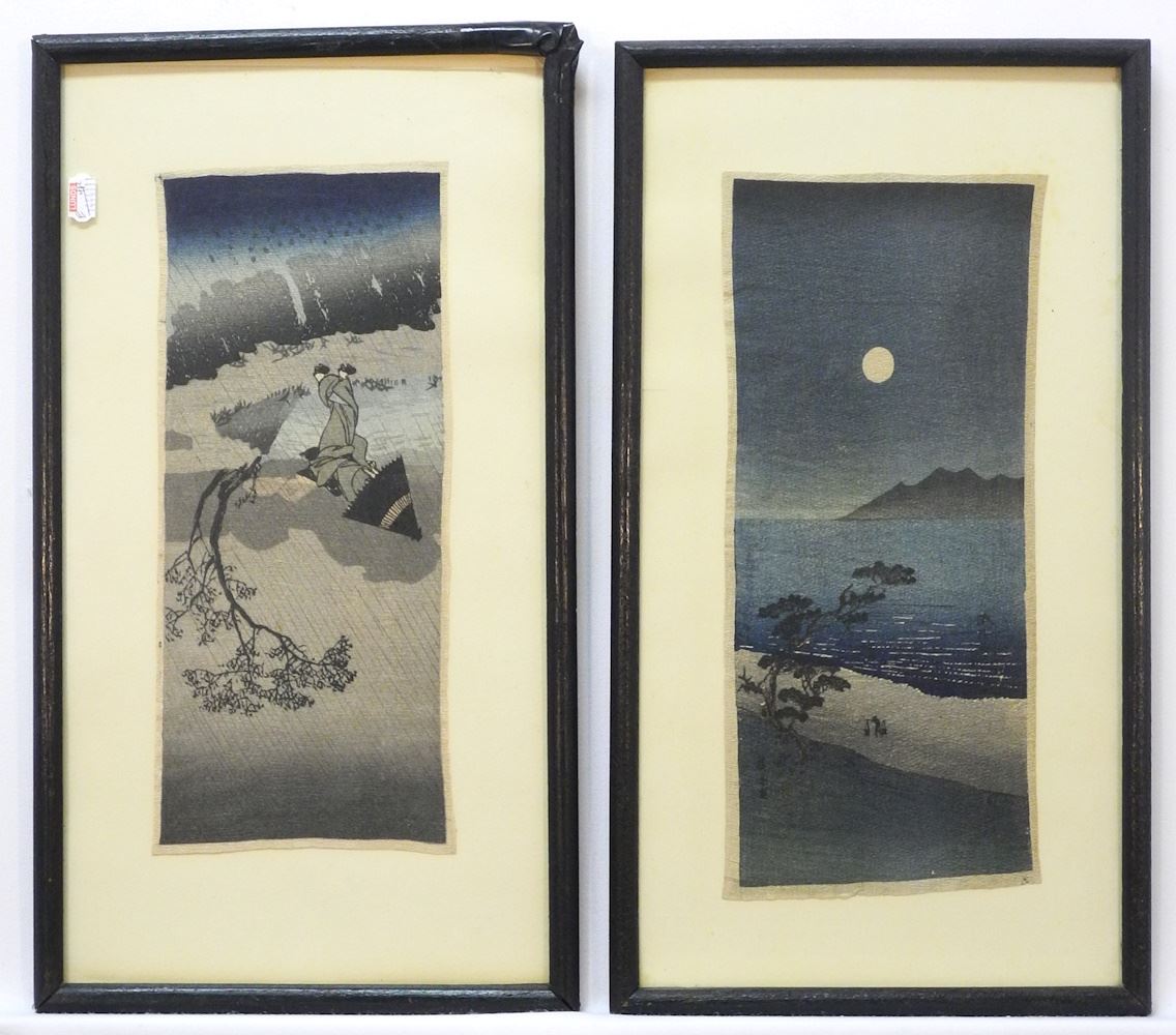 LOT 202 4 Japanese Woodblock Prints on Crepe Paper, Approximately 12" x 5", after Yoshimuni. Estimate: $50 - $100 Sold For: $105 Auction Date: Tuesday, January 30 2024 at 4:00 PM