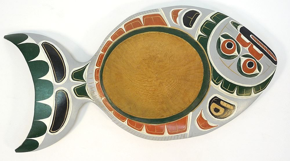 LOT 16 Kwagiulth Halibut Dish signed L.D. Scow '91. Estimate: $200 - $300 Sold For: $200 Auction Date: Tuesday, January 30 2024 at 4:00 PM
