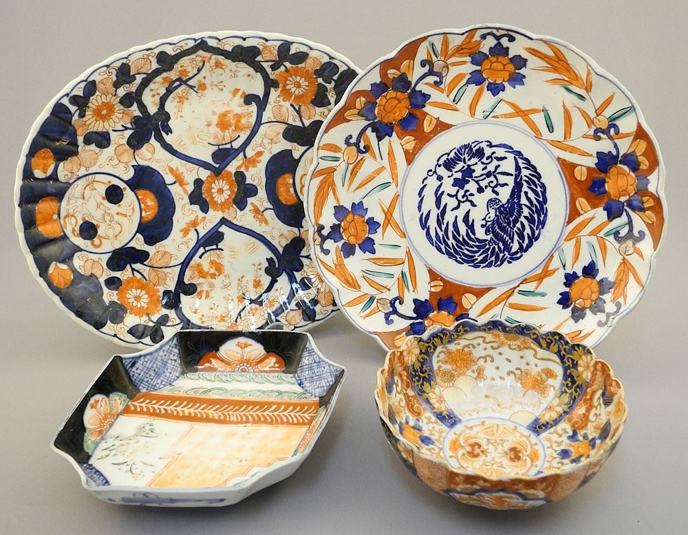 LOT 229 4 Japanese Imari Porcelain Wares, Bowl Restored, 5 1/8 - 9 3/4"W. Estimate: $100 - $150 Sold For: $50 Auction Date: Tuesday, January 30 2024 at 4:00 PM