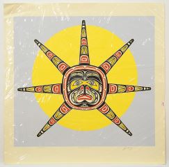 LOT 275 Serigraph signed J. (Jim) Johnny/79, 24" x 24", "Kwagiulth Sun" #328/1000 Estimate: $100 - $150 Sold For: $130 Auction Date: Tuesday, January 30 2024 at 4:00 PM