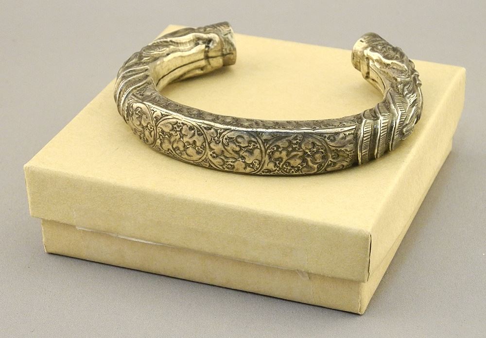 Tibetan 800 Silver (tested) Cuff Bracelet with Box, 34 Grams, 3 1/4"W.