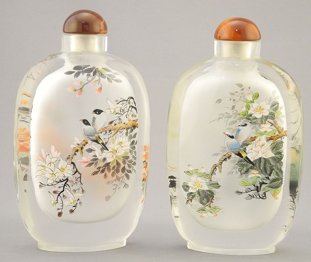 LOT 134 Pair of Chinese Reverse Painted Glass Snuff Style Bottles, 6 1/2", with Cases. Estimate: $80 - $120 Auction Date: Tuesday, March 19 2024 at 4:00 PM
