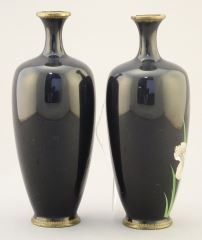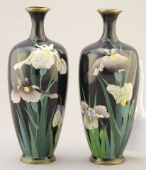 LOT 24 Pair of Japanese Cloisonne "Iris" Vases, 5 7/8"H. Estimate: $200 - $300 Sold For: $225 Auction Date: Tuesday, March 19 2024 at 4:00 PM
