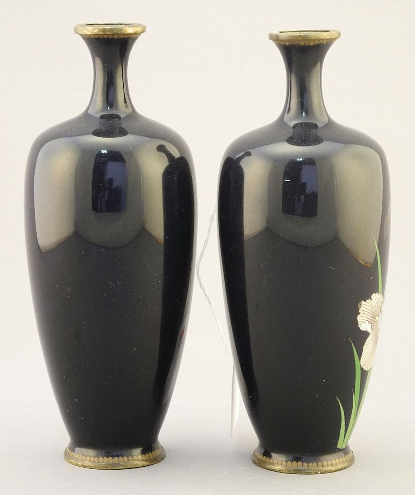 Pair of Japanese Cloisonne "Iris" Vases, 5 7/8"H.