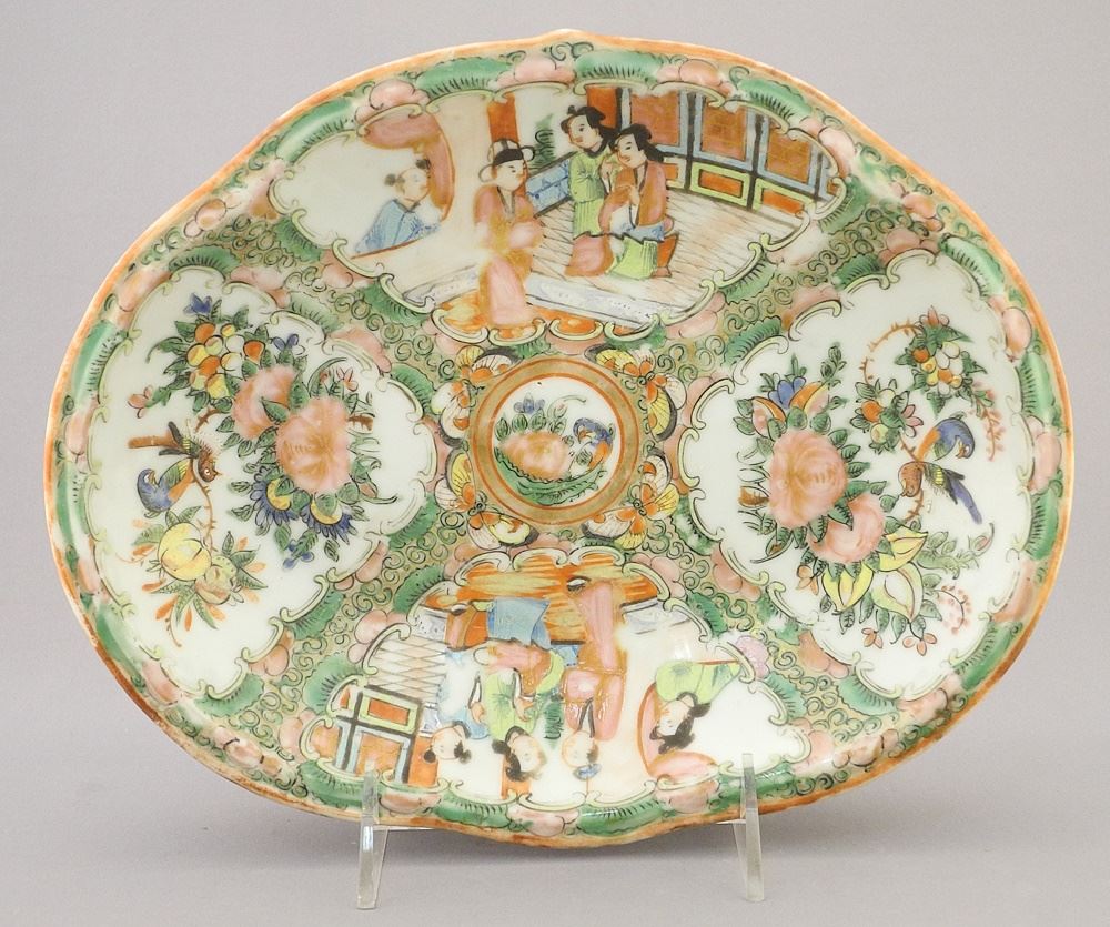 Canton Enamel Lobed Oval Dish, 10"W.