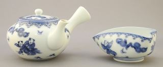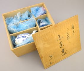 Japanese Blue & White Porcelain Tea Set with Box.