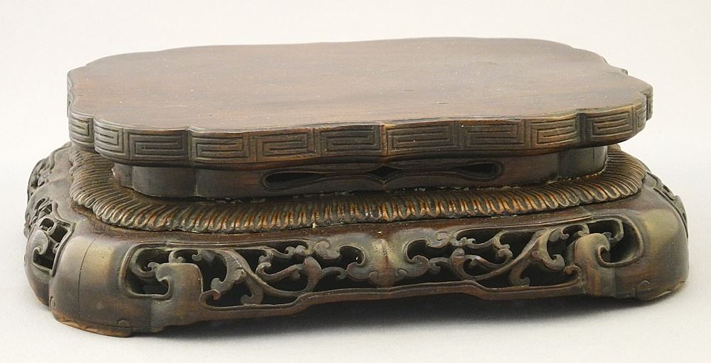 Elaborate Antique Chinese Carved Rosewood Display Stand, 2 1/8" x 7 1/4" x 6 3/8".