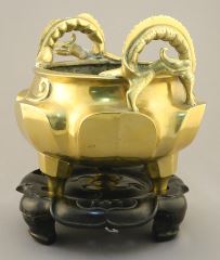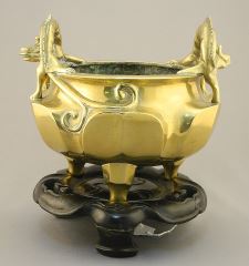 Chinese Brass Censer with Xuande Mark, 7 1/4" x 8 3/4" x 8", 2946 Grams, Includes Stand (chi
