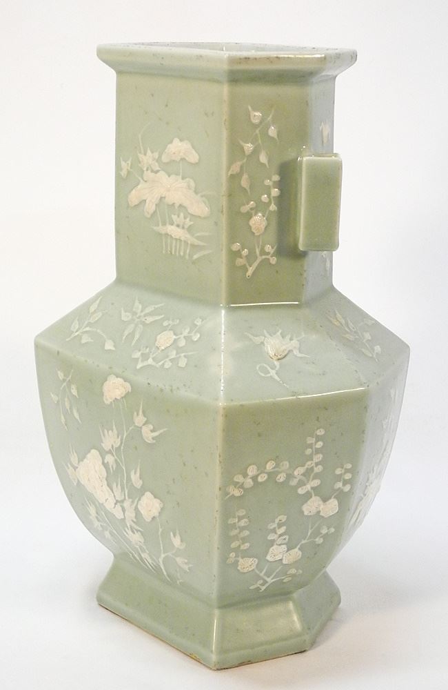 Late Qing Molded Porcelain Vase, Impressed Qianlong Mark, 18"H.