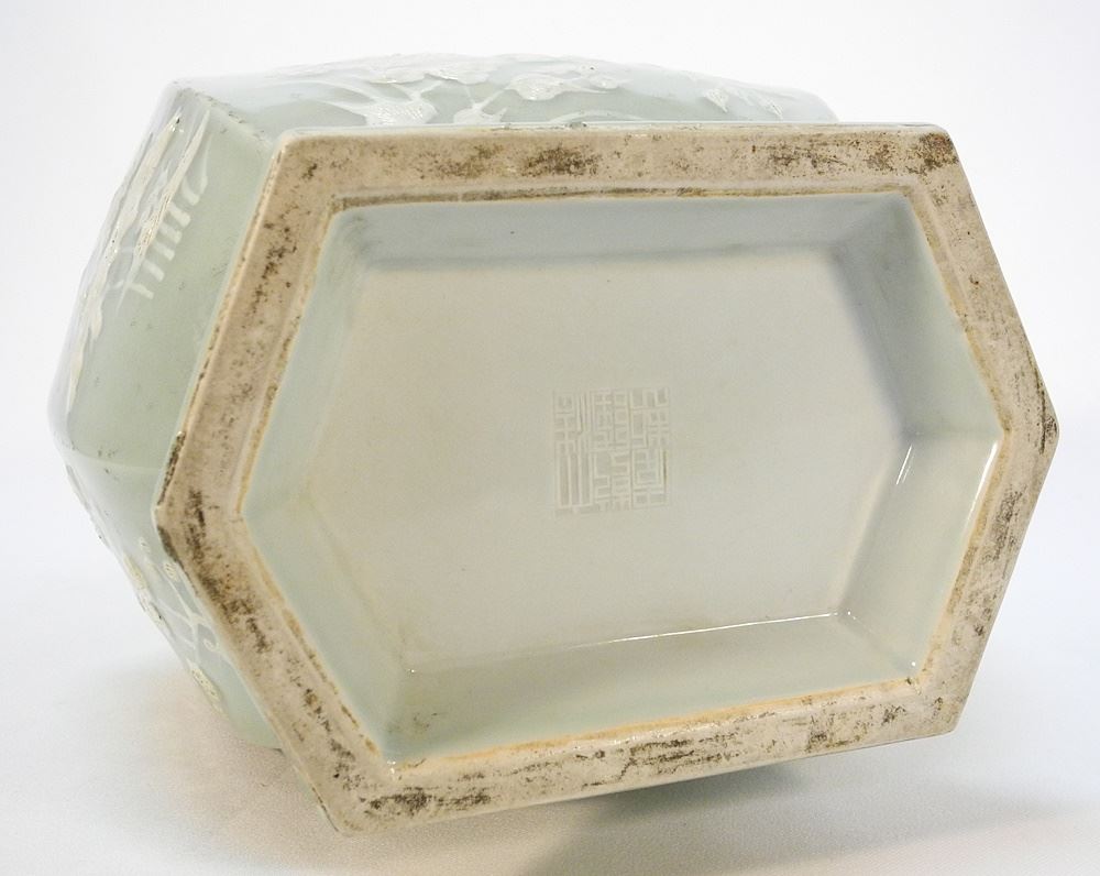 LOT 36 Late Qing Molded Porcelain Vase, Impressed Qianlong Mark, 18"H. Estimate: $800 - $1,200 Sold For: $500 Auction Date: Tuesday, March 19 2024 at 4:00 PM