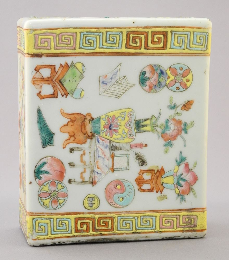 LOT 136 Chinese Famille Rose Porcelain Pillow, 5 3/4" x 4 3/4" x 2 1/4". Estimate: $200 - $300 Auction Date: Tuesday, March 19 2024 at 4:00 PM