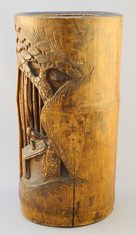 Chinese Bamboo Brush Pot, 10 1/4" H.
