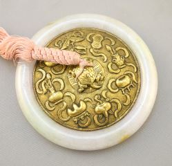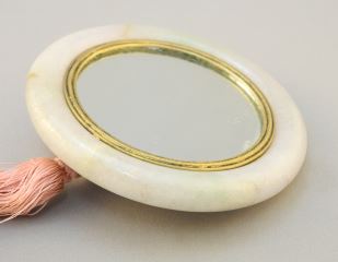 LOT 71 Chinese Bronze & Jade Bangle Hand Mirror, 3 1/2" diameter. Estimate: $120 - $180 Sold For: $180 Auction Date: Tuesday, March 19 2024 at 4:00 PM