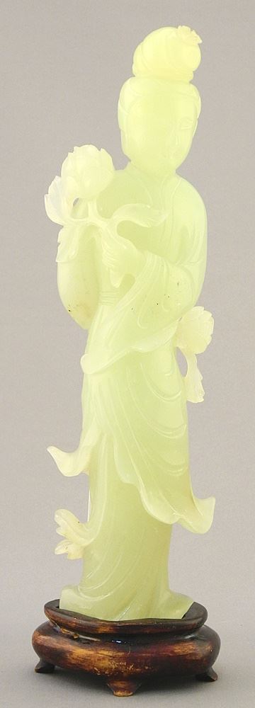 LOT 25 2 Jade Carvings: Kwan Yin (8 1/2"H) & Lion Dog (5 1/2"H). Estimate: $150 - $200 Sold For: $70 Auction Date: Tuesday, March 19 2024 at 4:00 PM