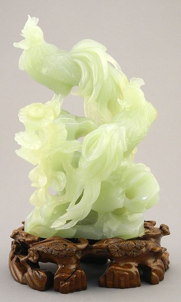 Jade "Rooster" Carving on Wood Stand