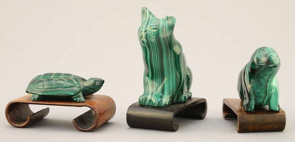 Collection of Malachite Animal Carvings with Stands, 2" - 3 1/8"L.