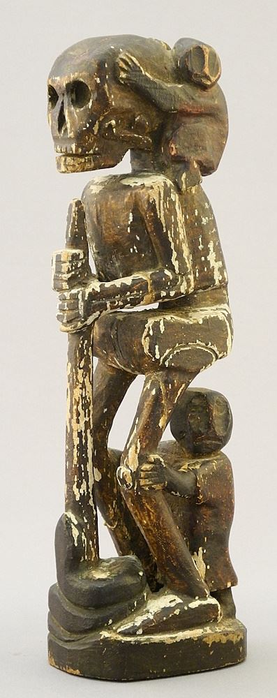 African Hand Carved Wood Skeletal Figure, 8 1/8"H.