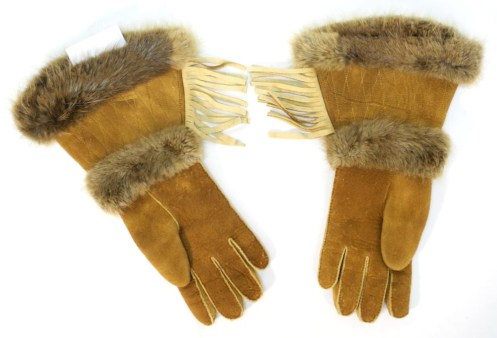 Pair of Dene South Slavey Beaded Moosehide Gauntlets, 16"L, Gents M, by Elsie Marcellais.