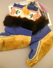 Pair of Ornately Beaded Vuntut Gwitchin Mukluks by Mary Charlie, 14 "L.