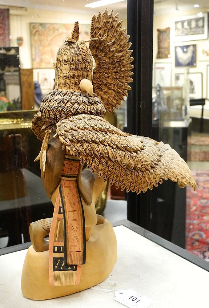 Carved Wood Kachina Signed Richard, 12 1/4 x 9 x 6 1/4", "Owl - Mon Gwa" , loss to plumage noted