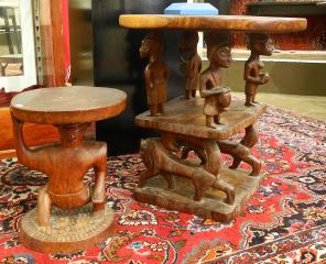 LOT 148 Ghanian Table & Stool, 24 1/8" & 15 1/8"H. Estimate: $100 - $200 Sold For: $225 Auction Date: Tuesday, March 19 2024 at 4:00 PM