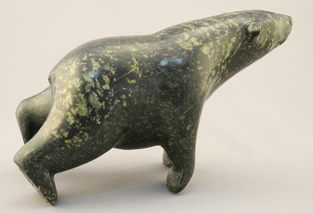 Inuit Stone Sculpture signed Quavavau Shaa, 12"L, "Swimming Bear"
