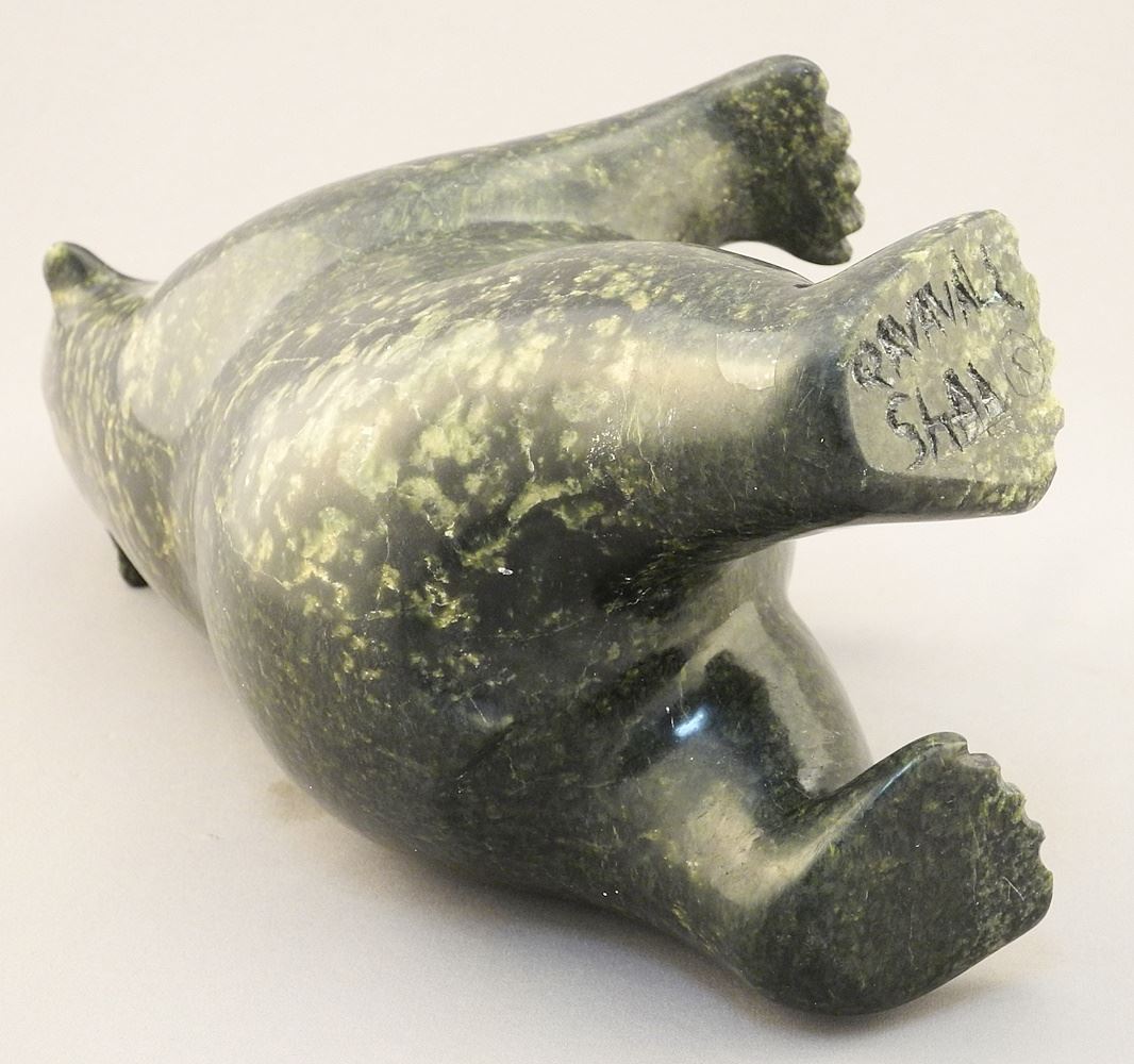 LOT 144 Inuit Stone Sculpture signed Quavavau Shaa, 12"L, "Swimming Bear" Estimate: $400 - $600 Sold For: $550 Auction Date: Tuesday, March 19 2024 at 4:00 PM