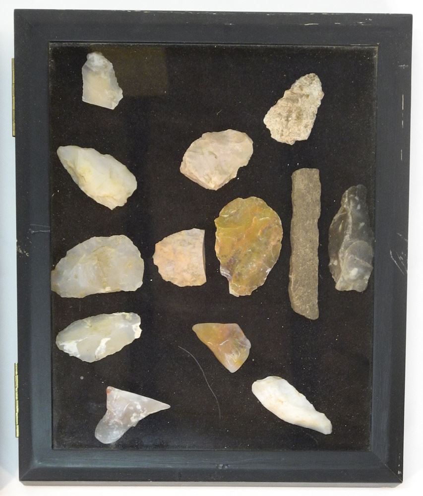 Prehistoric Stone Point Collection in Glass Display Case.