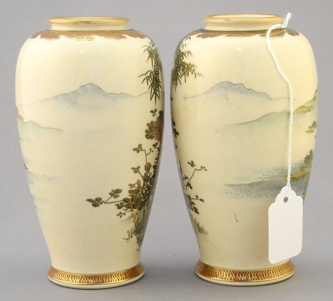 LOT 166 Pair of Satsuma Vases, signed, 6"H. Estimate: $80 - $140 Sold For: $225 Auction Date: Tuesday, March 19 2024 at 4:00 PM