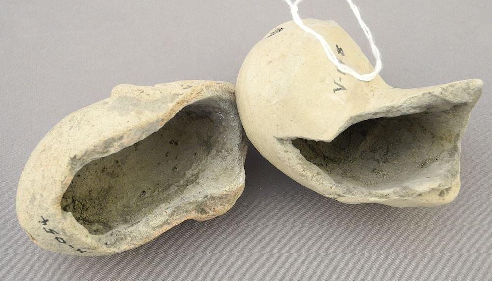 2 Clay Heads, Ecuador Vomacoaque Culture 200 AD, 2 1/2"H & 2 3/4"H.