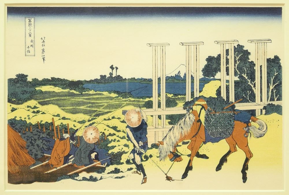 LOT 209 Woodblock Print after Hokusai, 7 3/4 " x 11 1/2", "Senju in Musashi Province". Estimate: $100 - $150 Auction Date: Tuesday, March 19 2024 at 4:00 PM