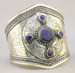LOT 251 White Metal Ethnic Lapis Lazuli Bracelet with Engraved Designs, 2 3/4"H, 72 Grams. Estimate: $50 - $60 Sold For: $80 Auction Date: Tuesday, March 19 2024 at 4:00 PM