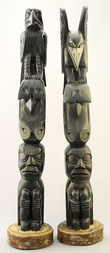 LOT 26 Pair of Monochrome Cowichan Model Totem Poles Estimate: $100 - $200 Sold For: $200 Auction Date: Tuesday, March 19 2024 at 4:00 PM