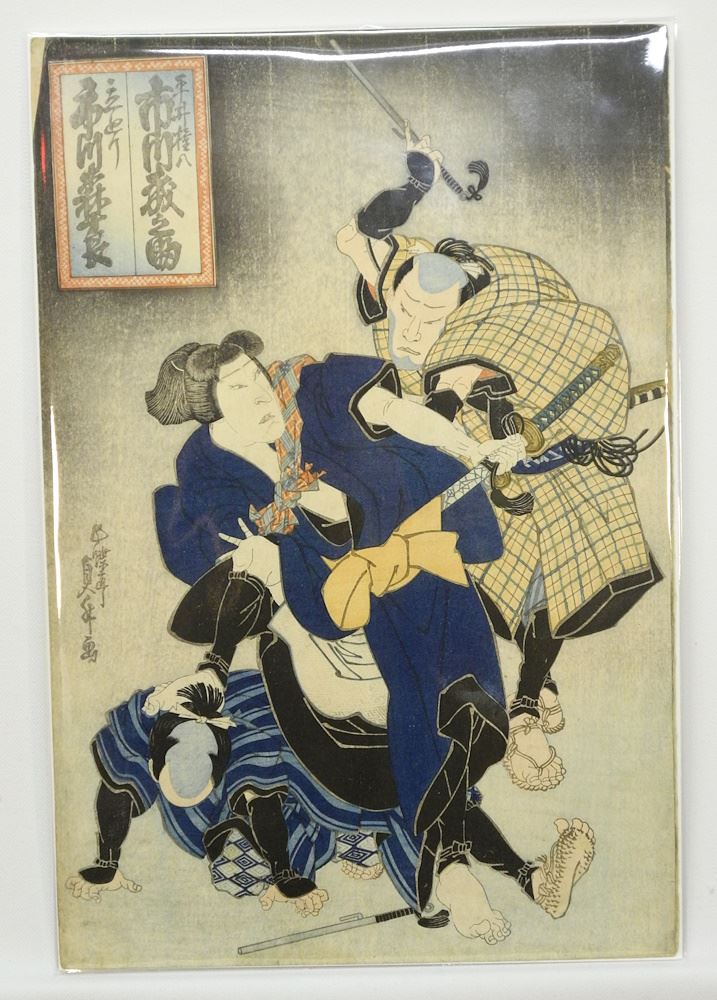 Woodblock Print by Sadamasu (II) / Utagawa, 14 1/2" x 9 3/4", "In Battle Tachimawari".