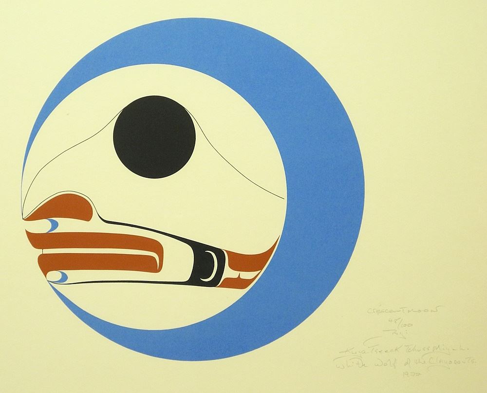 Serigraph signed Kwya Tseeck Tchuss Miyuk, 19 1/4" x 25 1/4", "Crescent Moon", #48/100.