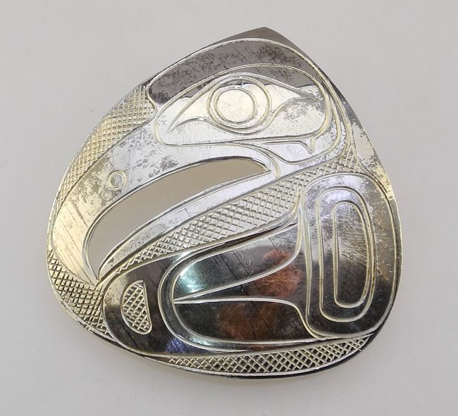 LOT 97 Kwaguilth Silver Pendant Monogrammed PS (Pat Seaweed), 2"H, 14.11 Grams, with Box. Estimate: $120 - $160 Sold For: $120 Auction Date: Tuesday, March 19 2024 at 4:00 PM
